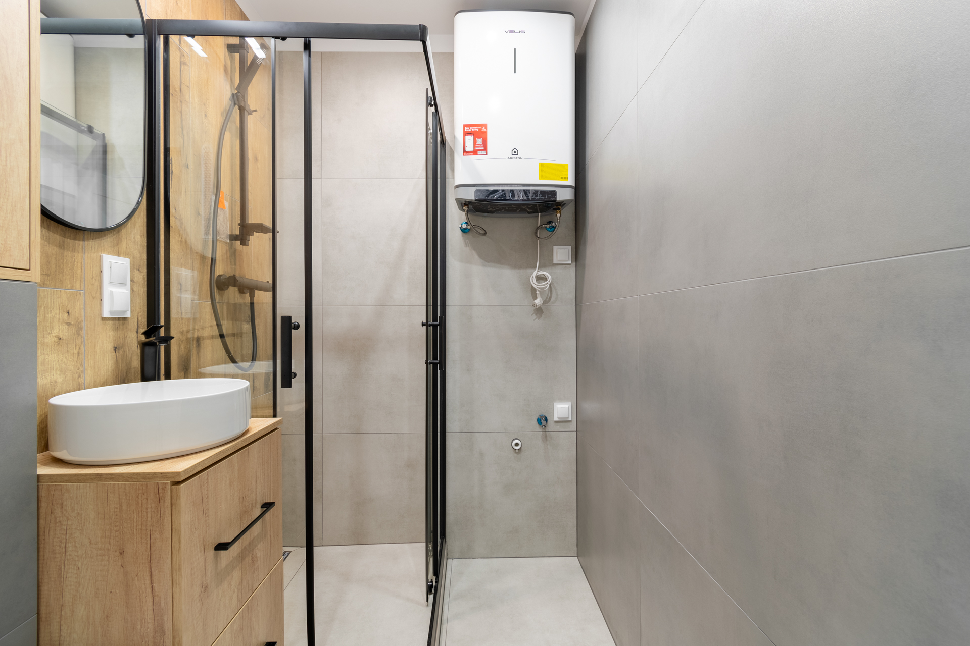 - łazienki z wc, kabiną z prysznicem oraz miejscem na pralkę,