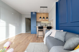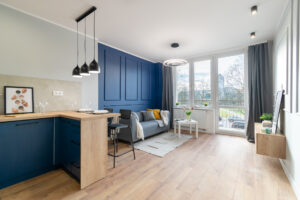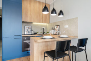 - zabudowy meblowe przygotowane na wymiar przez stolarza,